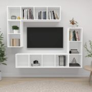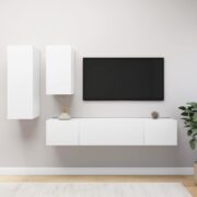 Televizoriaus spintelių komplektas, 4 dalių, baltas, mediena