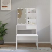 Kosmetinio staliuko komplektas su LED, baltas, apdirbta mediena