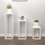 Stovų augalams rinkinys, 3 dalių, baltas, pušies masyvas