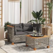 Kampinės sofos su pagalvėlėmis, 2vnt., pilkos, poliratanas