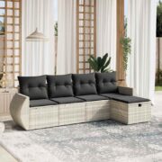 Sofos komplektas su pagalvėlėmis, 5 dalių, pilkas, poliratanas