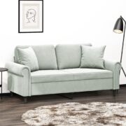 Dvivietė sofa su pagalvėlėmis, šviesiai pilka, 120cm, aksomas