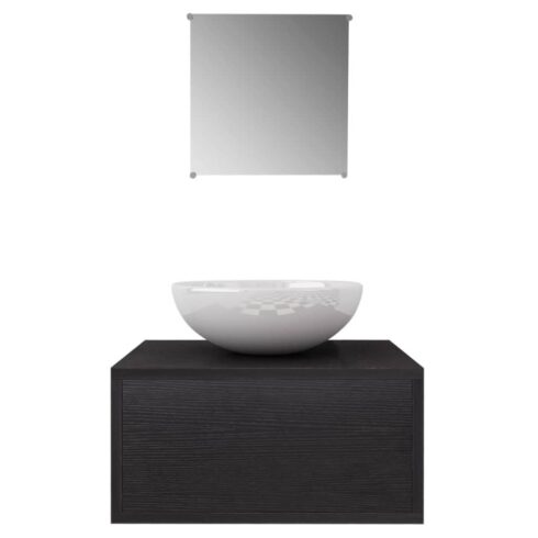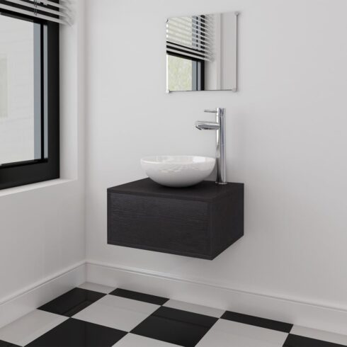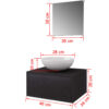 3 Dalių Baldų ir Praustuvo Komplektas Vonios Kambariui, Juodas