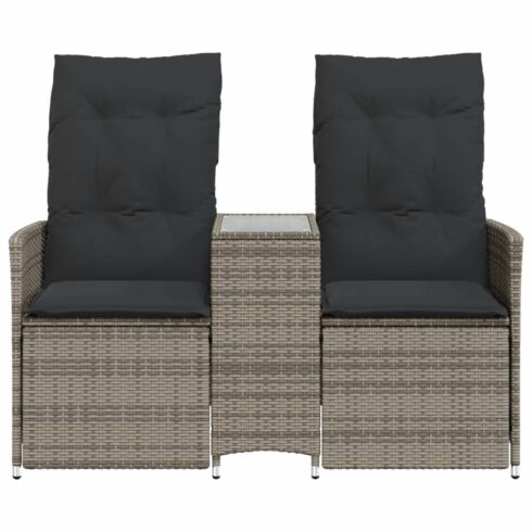 Atlošiama dvivietė sodo sofa su staliuku, pilka, poliratanas