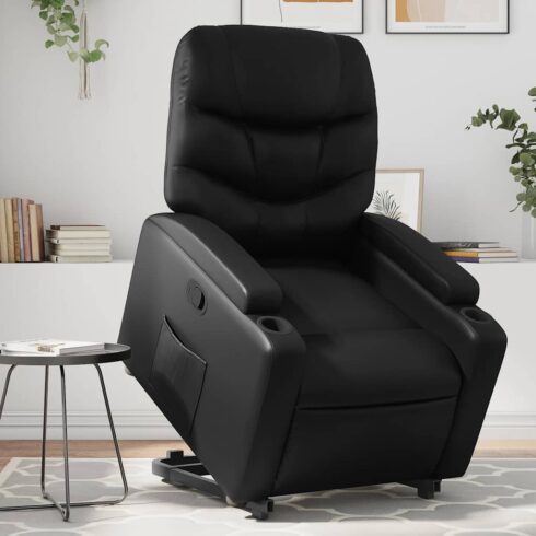 Įsigykite Atsistojantis atlošiamas krėslas, juodos spalvos, dirbtinė oda pigiau!
