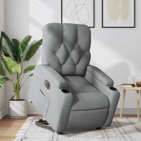 Įsigykite Atsistojantis atlošiamas krėslas, šviesiai pilkas, audinys pigiau!