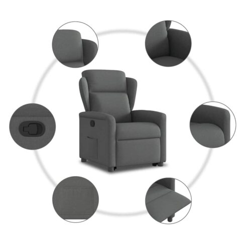 Įsigykite Atsistojantis atlošiamas krėslas, tamsiai pilkas, audinys pigiau!