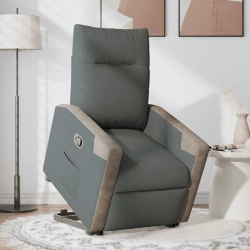 Įsigykite Atsistojantis atlošiamas krėslas, tamsiai pilkas, audinys pigiau!
