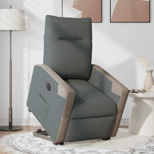 Įsigykite Atsistojantis atlošiamas krėslas, tamsiai pilkas, audinys pigiau!