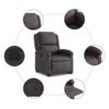 • Elektrinė pakeliama funkcija: šis atlošiamas krėslas vyresnio amžiaus žmonėms turi elektrinį variklį, kurio pagalba galėsite jį pakelti. Funkcija, kuri pakelia visą krėslą aukštyn užtikrina, kad galėsite lengvai, tiesiog paspaudę mygtuką atsistoti neapkraunant savo nugaros ir kelių.