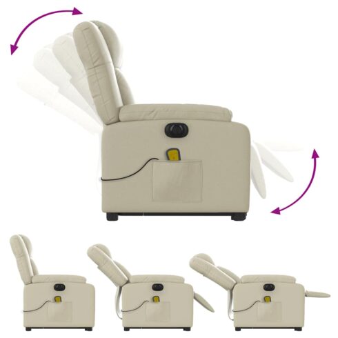 Atsistojantis masažinis krėslas, kreminis, dirbtinė oda