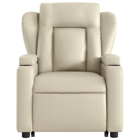 Atsistojantis masažinis krėslas, kreminis, dirbtinė oda