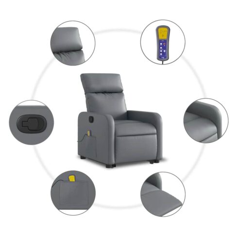 Atsistojantis masažinis krėslas, pilkas, dirbtinė oda