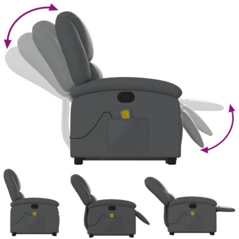 Atsistojantis masažinis krėslas, pilkas, dirbtinė oda