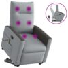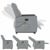 Atsistojantis masažinis krėslas, šviesiai pilkas, audinys