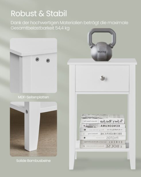 Įsigykite Bambukinis naktinis staliukas su stalčiais debesų baltumo pigiau!