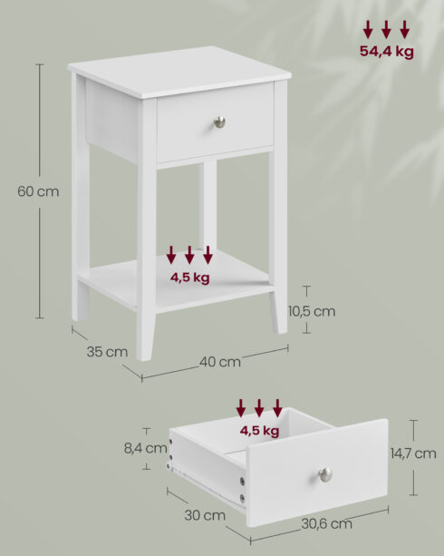 • Naktinio staliuko dydis: 35 x 40 x 60 cm (D x Š x V)