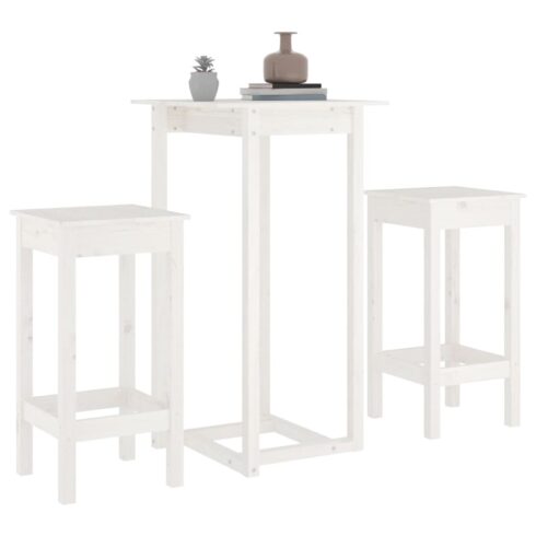 Įsigykite Baro baldų komplektas, 3 dalių, baltas, pušies medienos masyvas pigiau!
