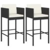 Baro taburetės su pagalvėlėmis, 2vnt., juodos, poliratanas