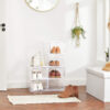 • Patvarios ir sukraunamos: mūsų batų organizatoriai pagaminti iš tvirto plastiko, kuris žada ilgą tarnavimo laiką. Dėžutėje jūsų batai bus apsaugoti nuo dulkių. Be to, kelias dėžes galima stabiliai sujungti tarpusavyje dėl pridedamų nedidelių jungiamųjų dalių. Tai leidžia sukurti ištisą batų spintą ir sutaupyti daugiau vietos.