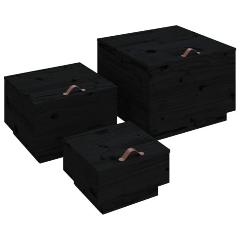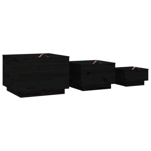 Daiktadėžės su dangčiais, 3vnt., juodos, pušies masyvas
