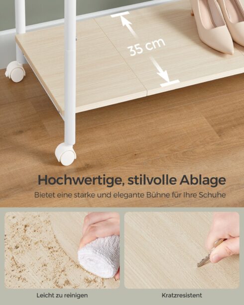 Drabužių lentyna ant ratukų ąžuolo spalvos-kreminės baltos spalvos