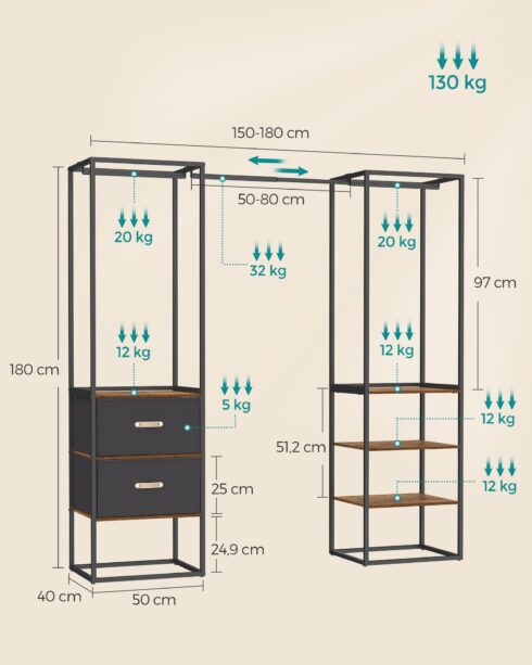 Būkite pirmas aprašęs “Drabužių lentyna su 2 stalčiais ir 4 lentynomis vintage ruda”