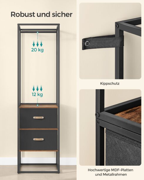 Įsigykite Drabužių lentyna su 2 stalčiais ir 4 lentynomis vintage ruda pigiau!