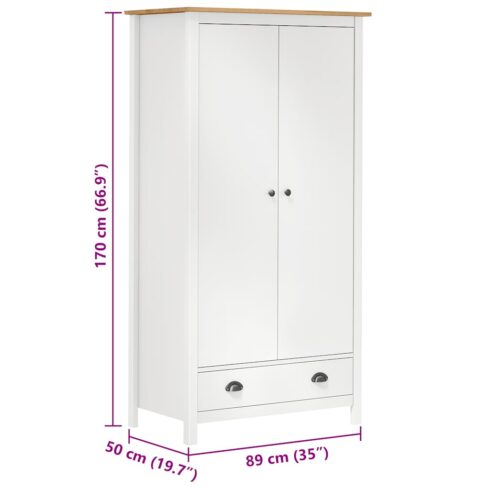 Įsigykite Drabužių spinta Hill, balta, 89x50x170cm, pušis, 2 durų pigiau!