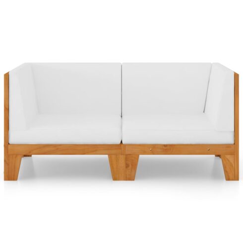 Įsigykite Dvivietė sofa su kreminėmis pagalvėlėmis, akacijos masyvas pigiau!