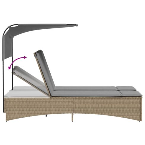 Dvivietis saulės gultas, smėlio spalvos mišinys, poliratanas