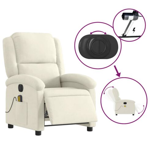 Įsigykite Elektrinis atlošiamas masažinis krėslas, kreminis, aksomas pigiau!
