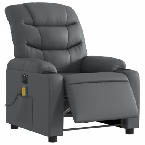 Įsigykite Elektrinis atlošiamas masažinis krėslas, pilkas, dirbtinė oda pigiau!