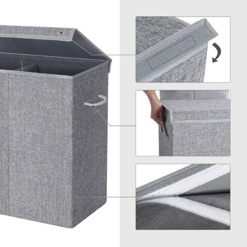 • Odai nekenksminga lino imitacija: šis skalbinių krepšys padengtas orui pralaidžia lino imitacija, elegantiška pilka spalva. Ši medžiaga užtikrina gerą ventiliaciją, be to, dera prie beveik bet kokio interjero stiliaus.
