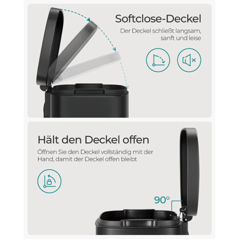 • „Šuniukams ir vaikams saugi” šiukšliadėžė: Ar jūsų šuo dažnai rausiasi šiukšliadėžėje? Ar jūsų mažyliai dažnai pasiekia atvirą šiukšliadėžę? Jei taip, norėsite tam padaryti galą. Štai kur mūsų pedalų šiukšliadėžė! Dangtis atsidaro tik tada, kai paspaudžiate pedalą, o dėl aukštos kokybės medžiagos ir praktiško dizaino ši šiukšliadėžė yra sumanus atliekų šalinimo sprendimas.