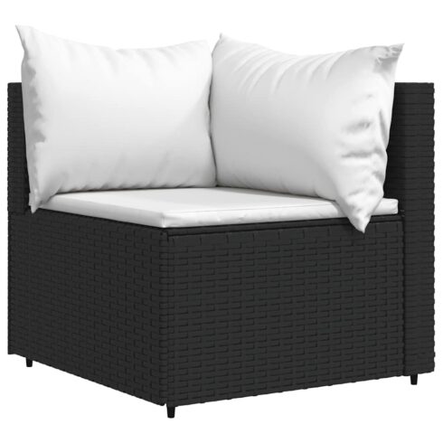 Kampinė sodo sofos dalis su pagalvėlėmis, juoda, poliratanas