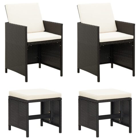 Kėdžių ir taburečių komplektas, 4 dalių, juodas, poliratanas