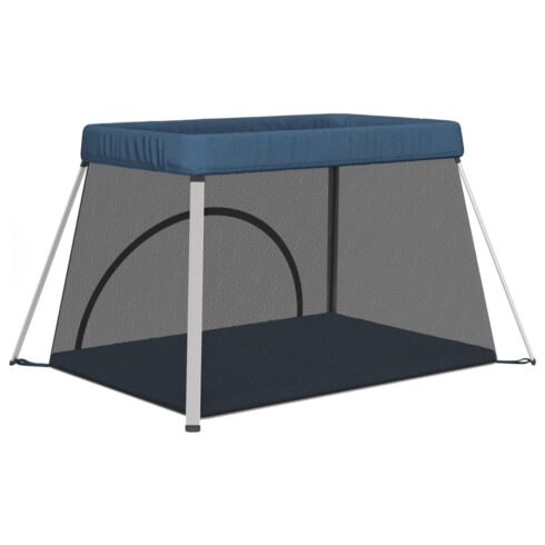 Kūdikio maniežas su čiužiniu, tamsiai mėlynas, lininis audinys