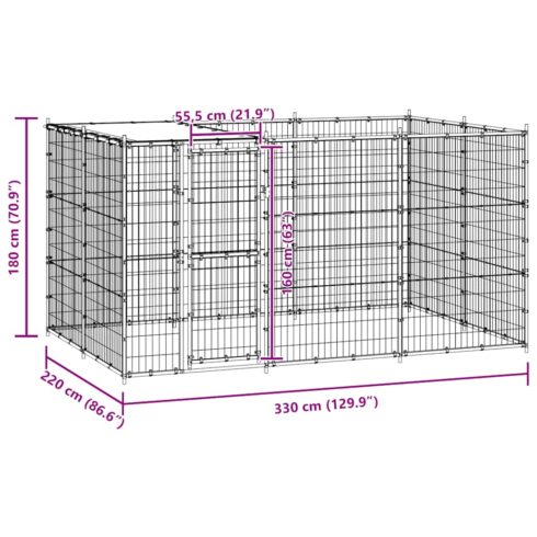 Lauko voljeras šunims su stogu, galvanizuotas plienas, 7,26m²