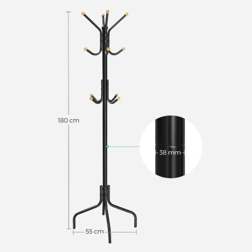 Juodos spalvos metalinė paltų lentyna