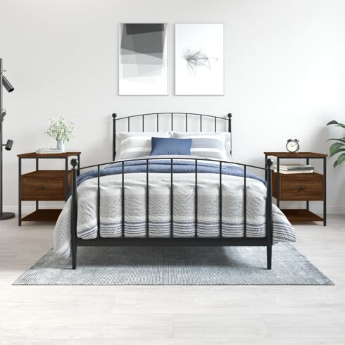 Įsigykite Naktinės spintelės, 2vnt., rudos ąžuolo, 40x42x56cm, mediena pigiau!