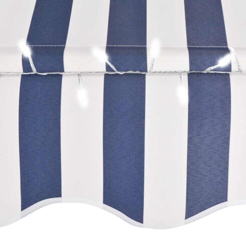 Įsigykite Rankinė ištraukiama markizė su LED, mėlyna ir balta, 300cm pigiau!