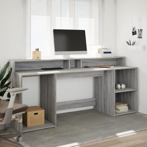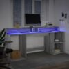 Rašomasis stalas su LED, pilkas ąžuolo, 200x55x91cm, mediena