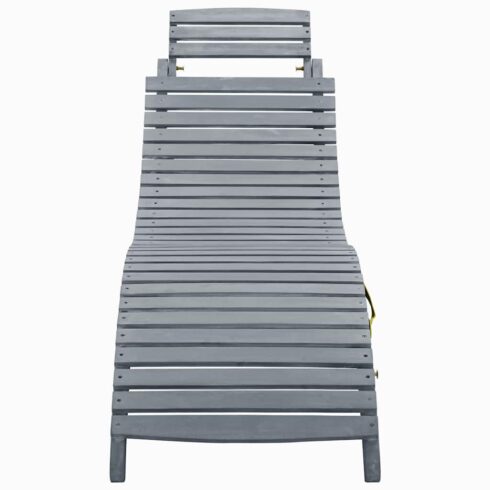 Saulės gultas su čiužinuku, pilkas, akacijos medienos masyvas