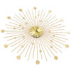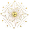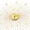Su mūsų stulbinančiu auksinės spalvos metaliniu sieniniu laikrodžiu, papuoškite savo gyvenamąją erdvę! Pasižymintis blizgios saulės dizainu, šis sieninis laikrodis yra neabejotinai puošni detalė ir taps puikiu akcentu jūsų namų interjere.