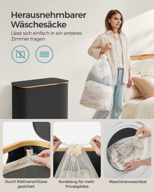 Įsigykite Skalbinių krepšys 3 skyriai su bambuko rankenomis rašalas juodas pigiau!