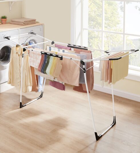Būkite pirmas aprašęs “Skalbinių stovas su kojinių laikikliu metalinis pilkas”