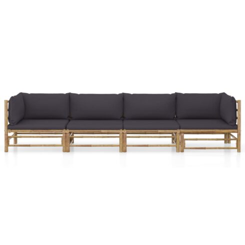 Sodo komplektas su pilkomis pagalvėmis, 4 dalių, bambukas