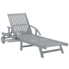 Šis lauko saulės gultas yra pagamintas iš pilka baltinta apdaila dengto akacijos medienos masyvo, kuris užtikrina, kad jis yra tvirtas ir stabilus. Atlošas ir pakoja yra reguliuojami, o poilsio gultą galite užfiksuoti norimoje padėtyje. Pasižymintis 2 įmontuotais ratukais, šis sodo saulės gultas namuose gali būti paprastai judinamas iš vienos vietos į kitą. Saulės gultas turi patogų ištraukiamą staliuką ant kurio galėsite pasidėti savo telefoną, akinius nuo saulės, gėrimą ir kitus mažus daiktus. Čiužinukas poilsio metu suteikia papildomo komforto. Kiekvienas čiužinukas turi du virvučių rinkinius, kurių pagalba jis gali būti pritvirtintas prie saulės gulto.
