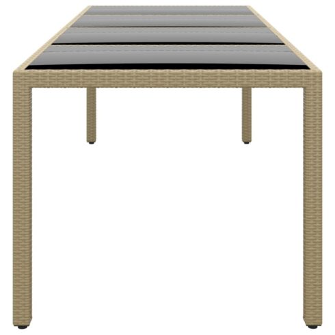 Sodo stalas su stikliniu stalviršiu, smėlio, poliratanas